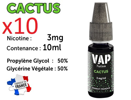 10 flacons e-liquides Vap Nation cactus 3mg/ml de nicotine.