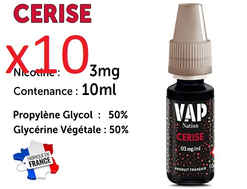 10 flacons e-liquides Vap Nation cerise 3mg/ml de nicotine.