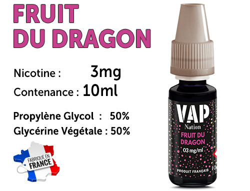 E-liquide Vap Nation fruit du dragon 3mg/ml de nicotine.