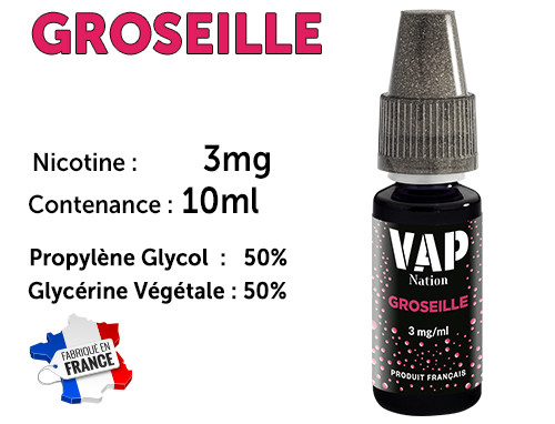 E-liquide Vap Nation groseille 3mg/ml de nicotine.