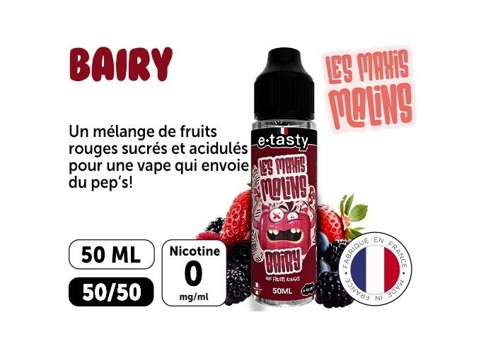 Bairy le déglingo promet un mélange de fruits rouges sucrés et acidulés pour une vape qui envoie du peps !