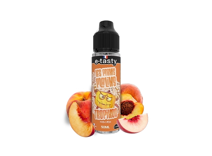 Tropikoo, toujours la tête en vacances, mise sur des pêches juteuses pour une vape douce et ensoleillée.