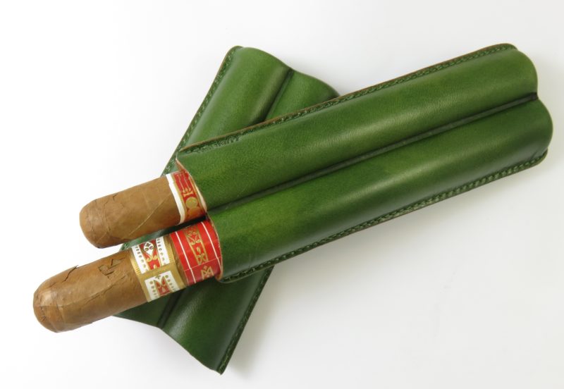 Etui cigare en cuir LUBINSKI vert pour 2 modules grand corona et churchill.