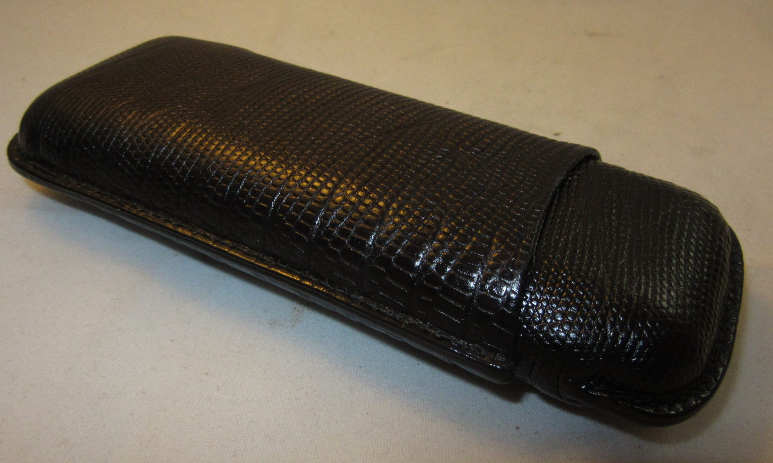Etui à cigare MARTIN WESS 2 robusto en cuir noir façon lézard.