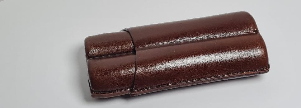 Etui à cigares en cuir noir pour 2 robusto Lubinski. Cognac.