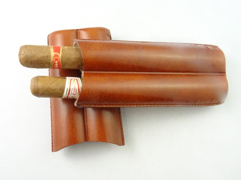 Etui en cuir Lubinski 2 cigares Toro marron.