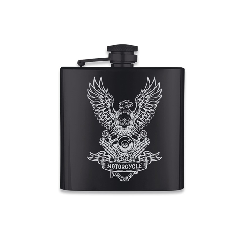Flasque 180 ML Noire Mat 6 Oz gravure “Motorcycle”