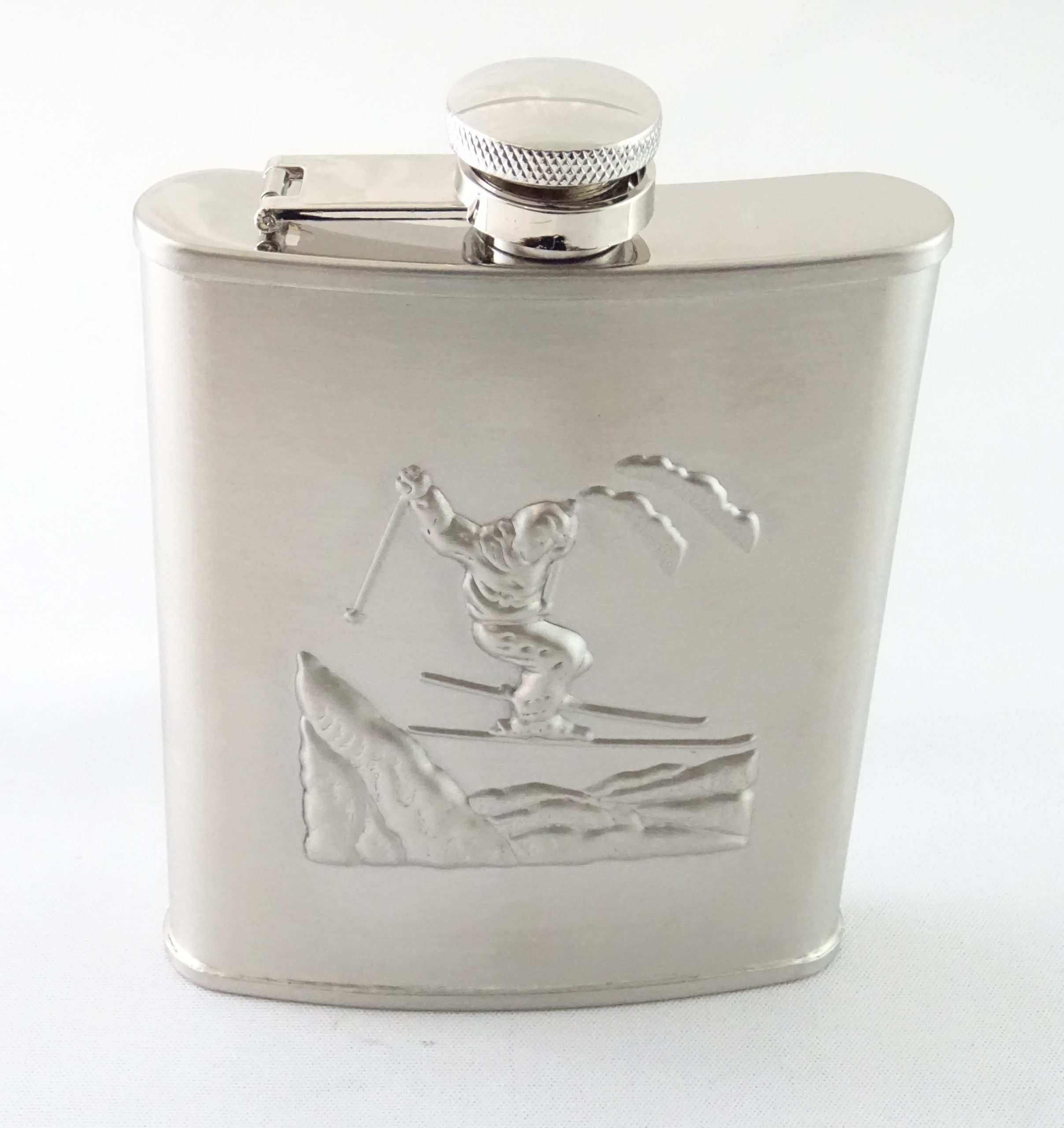 FLasque 180ML KEEN SPORT en acier inoxidable décor skieur en relief.