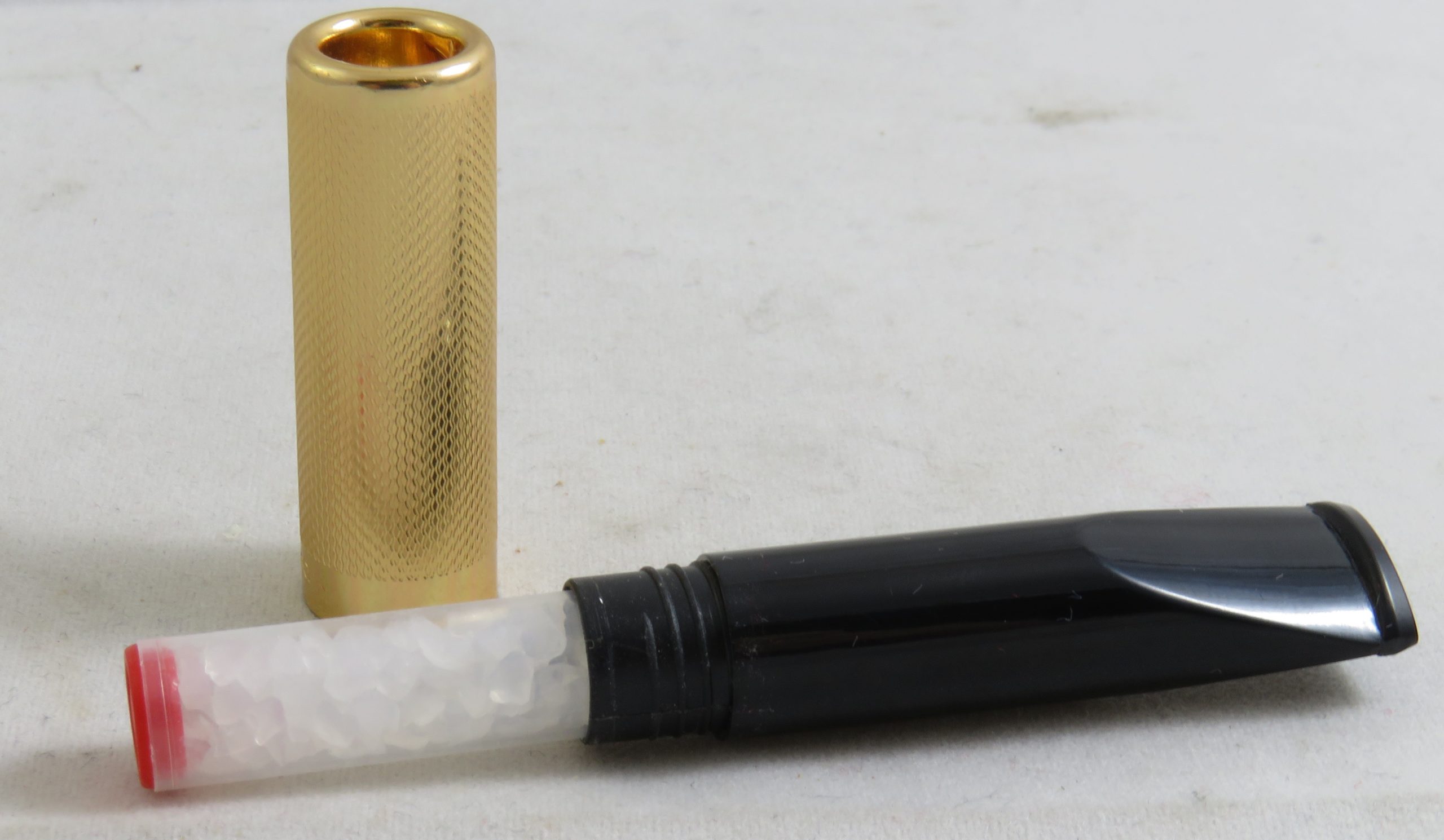Fume cigarette Denicotea métal doré, tuyau en acrylique noir.