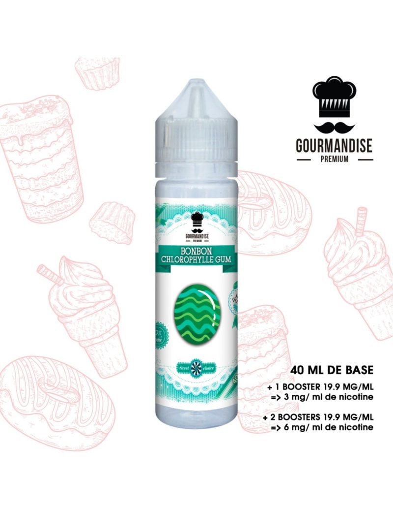 Base à booster saveur Bonbon Chlorophylle Gum de la Gamme GOURMANDISE. Ce e-liquide sans nicotine est à associer ou non à un booster de nicotine afin d’obtenir un produit final nicotiné. Ce flacon de 60 ml rempli en 40 ml permet l’ajout de 2 boosters pour aller jusqu’au 6 mg/ml de nicotine. Sa tétine dévissable permet d’insérer facilement le booster sans avoir à enlever totalement le bouchon. Vous pouvez retrouver nos boosters de nicotine avec ou sans sels de nicotine dans cette section.