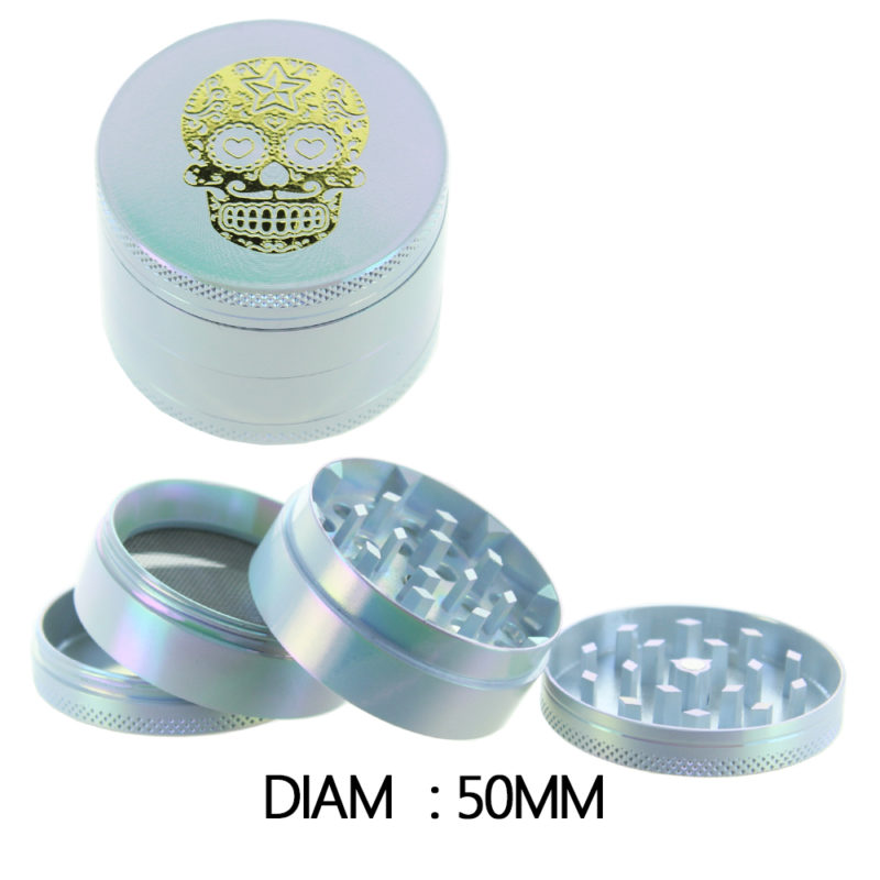 Grinder Alu “Mexican Skull” (Blanc) 50mm, 4 partie avec récupérateur de pollen.