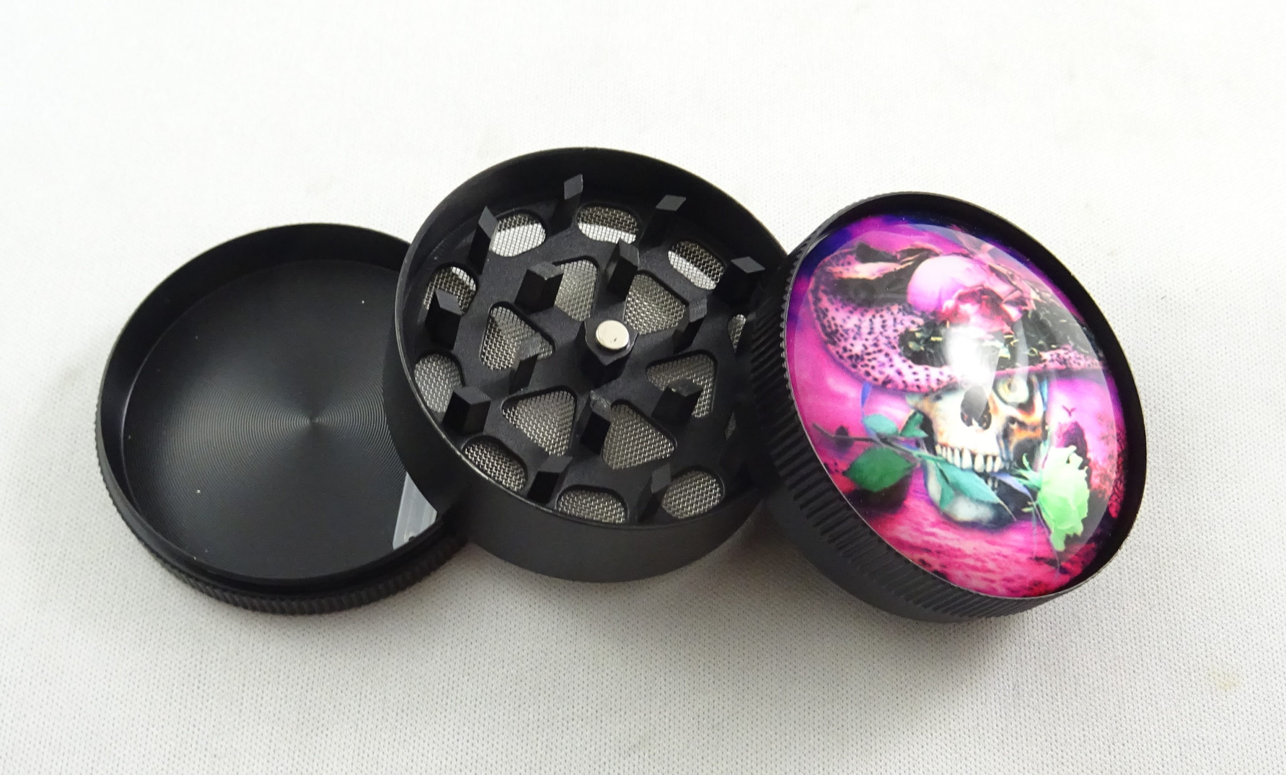 Grinder en métal en 3 parties, 1 partie aimantée avec des dents pour broyer le tabac avec un récupérateur de pollen.