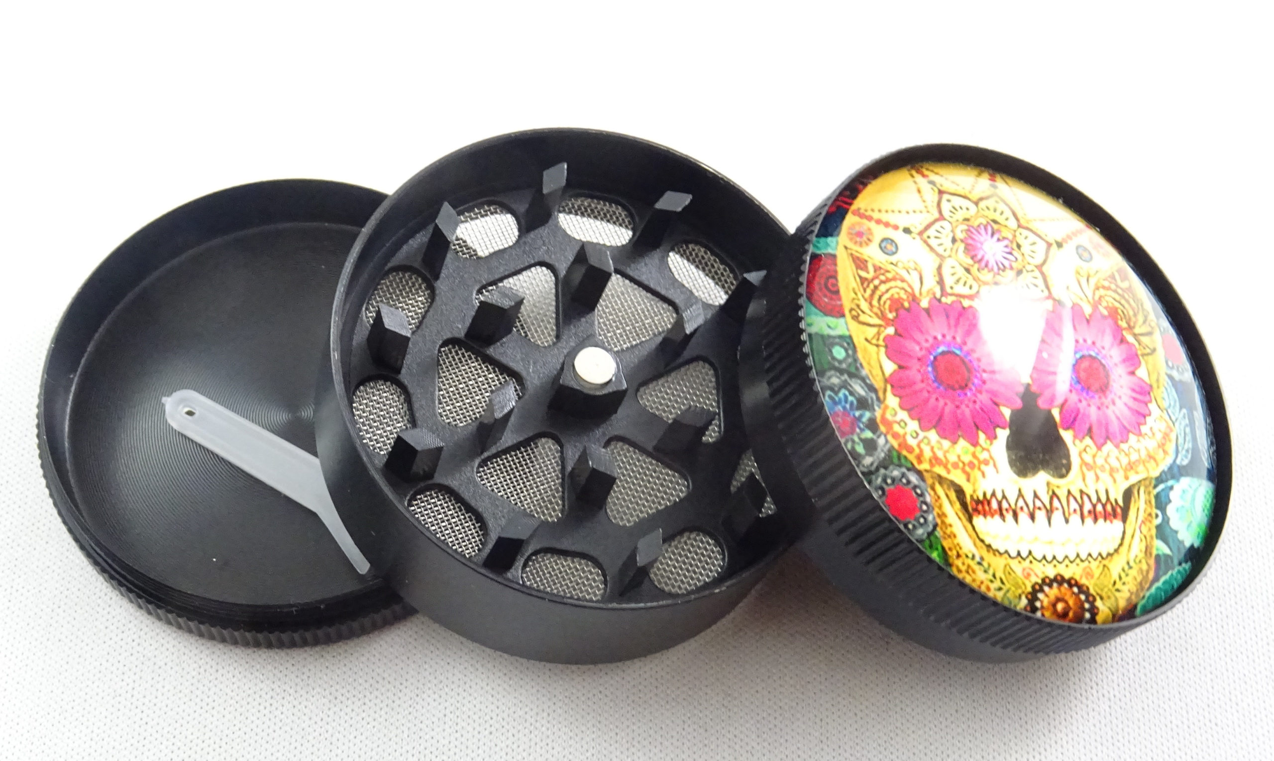 Grinder en métal en 3 parties, 1 partie aimantée avec des dents pour broyer le tabac avec un récupérateur de pollen.