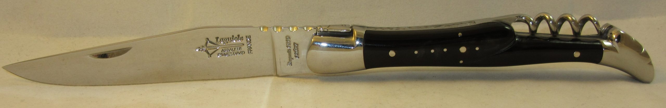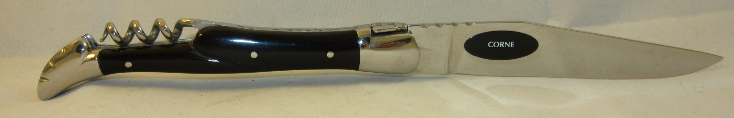 Couteau Laguiole 2 pièces tire-bouchon 11 cm, 2 mytres inox guilloché, manche en corne de Zèbu.