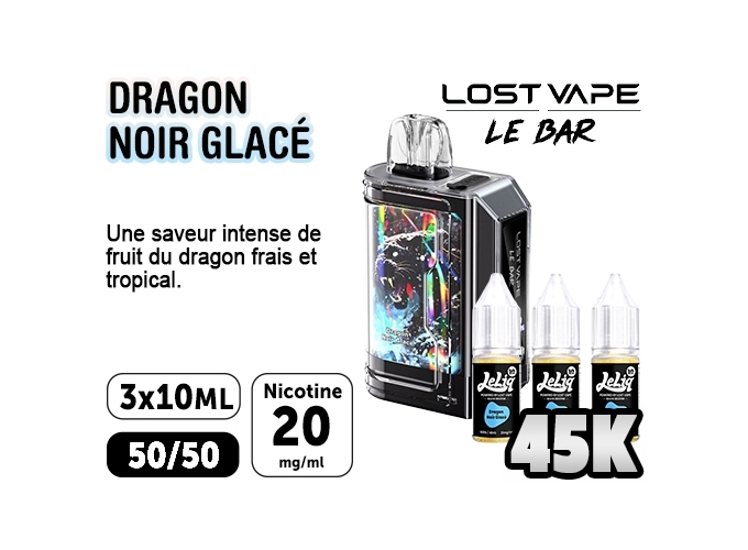 La puff 45K Le Bar par Lost Vape sera parfaite pour s’initier à la vape en toute simplicité. Ce kit complet contient une batterie de 1000mAh, une cartouche pré-remplie de 2ml et 3 flacons de 10ml d’e-liquide au sel de nicotine en 20mg.