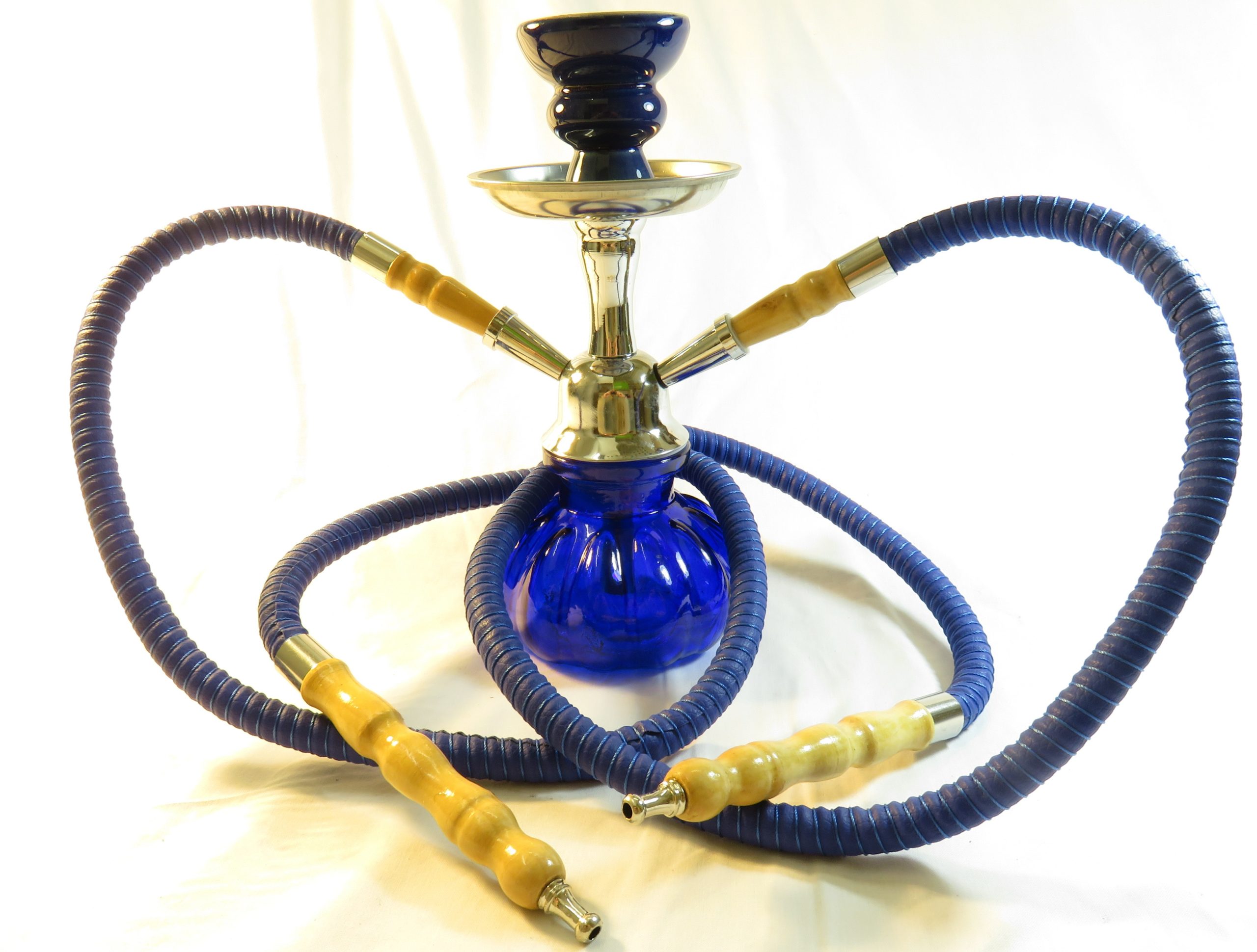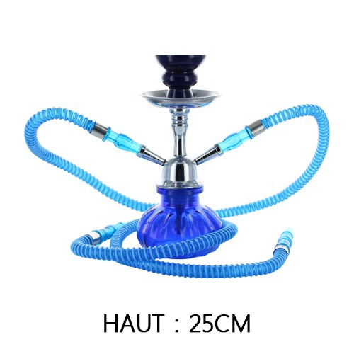 Narguilé HOOKAH 25 cm 2 tuyaux bleu.