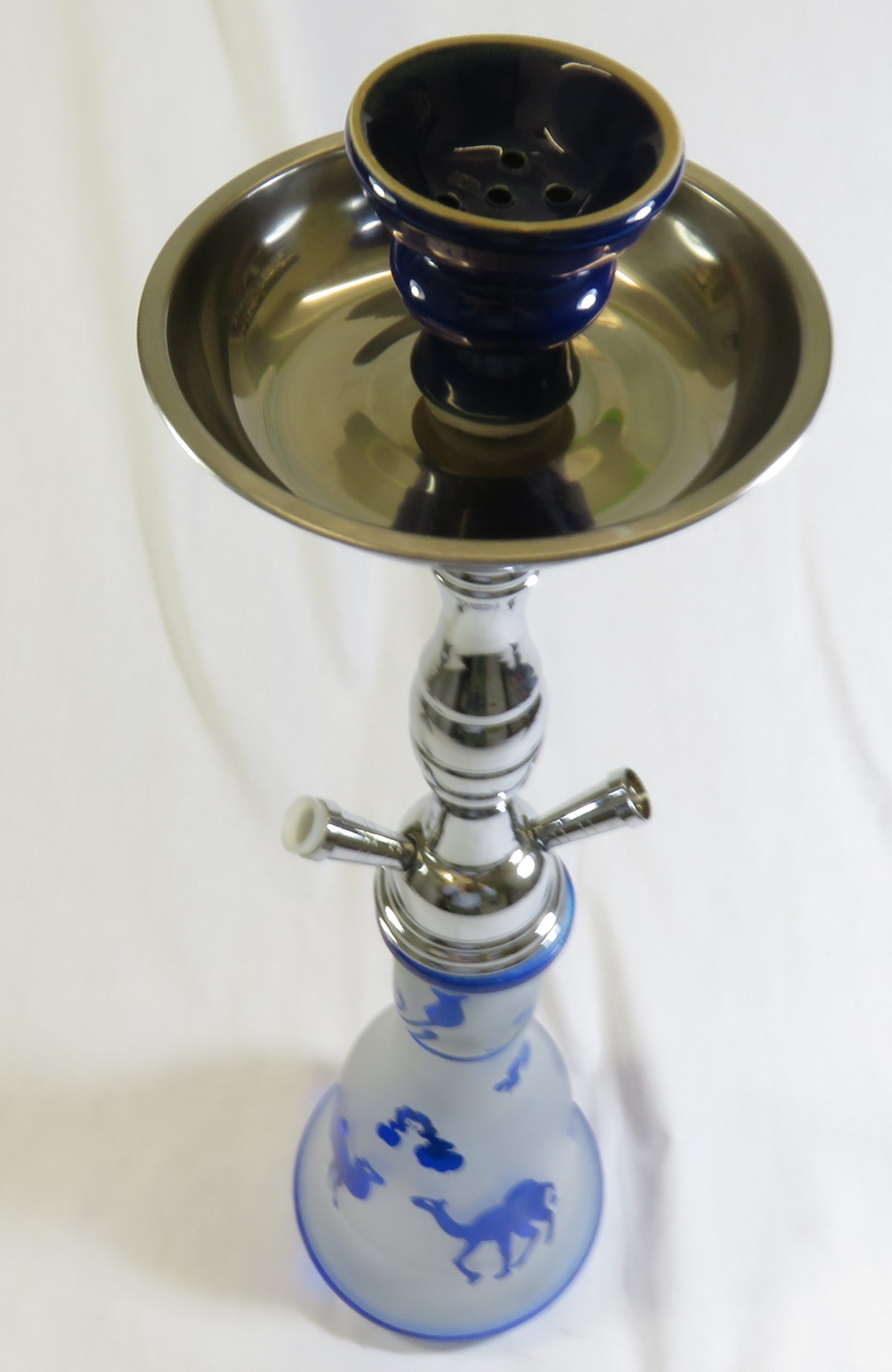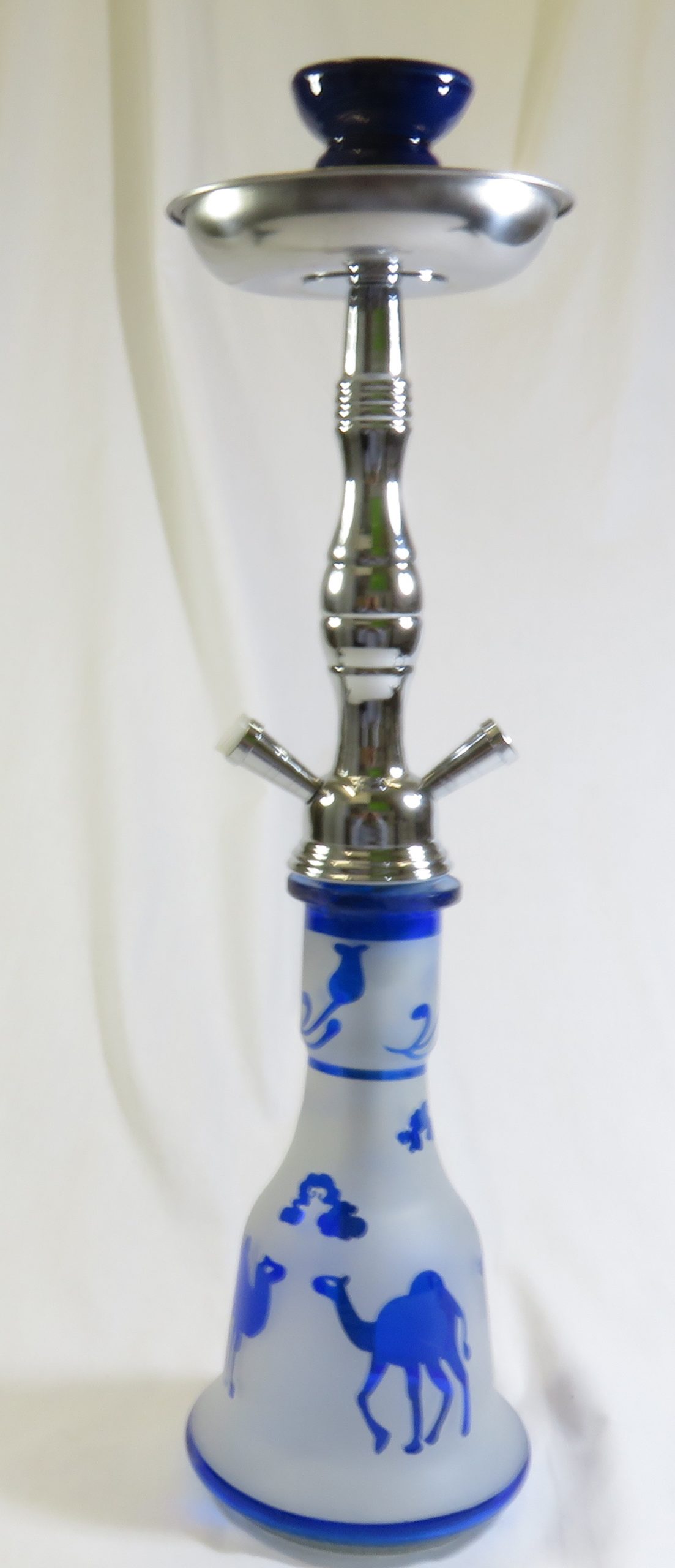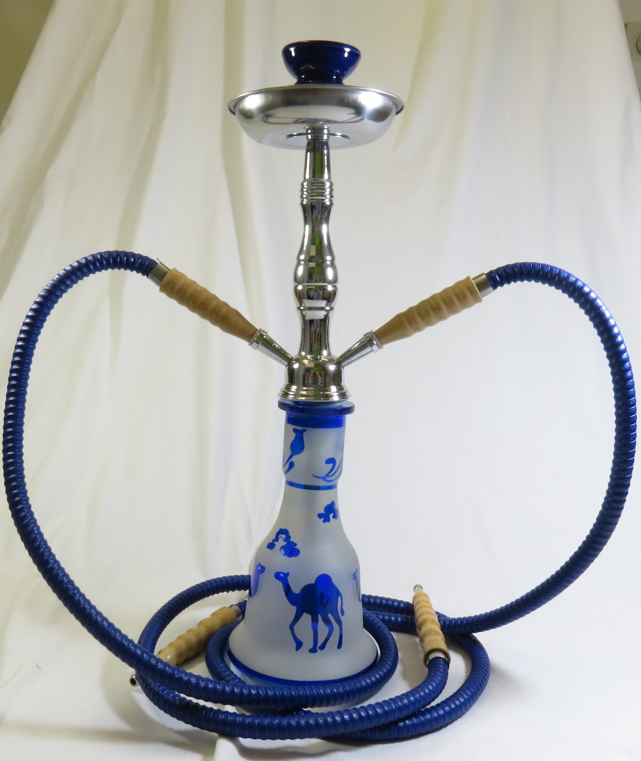 Narguilé Hookah hauteur 42 cm, 2 tuyaux décor du réservoir camel bleu.