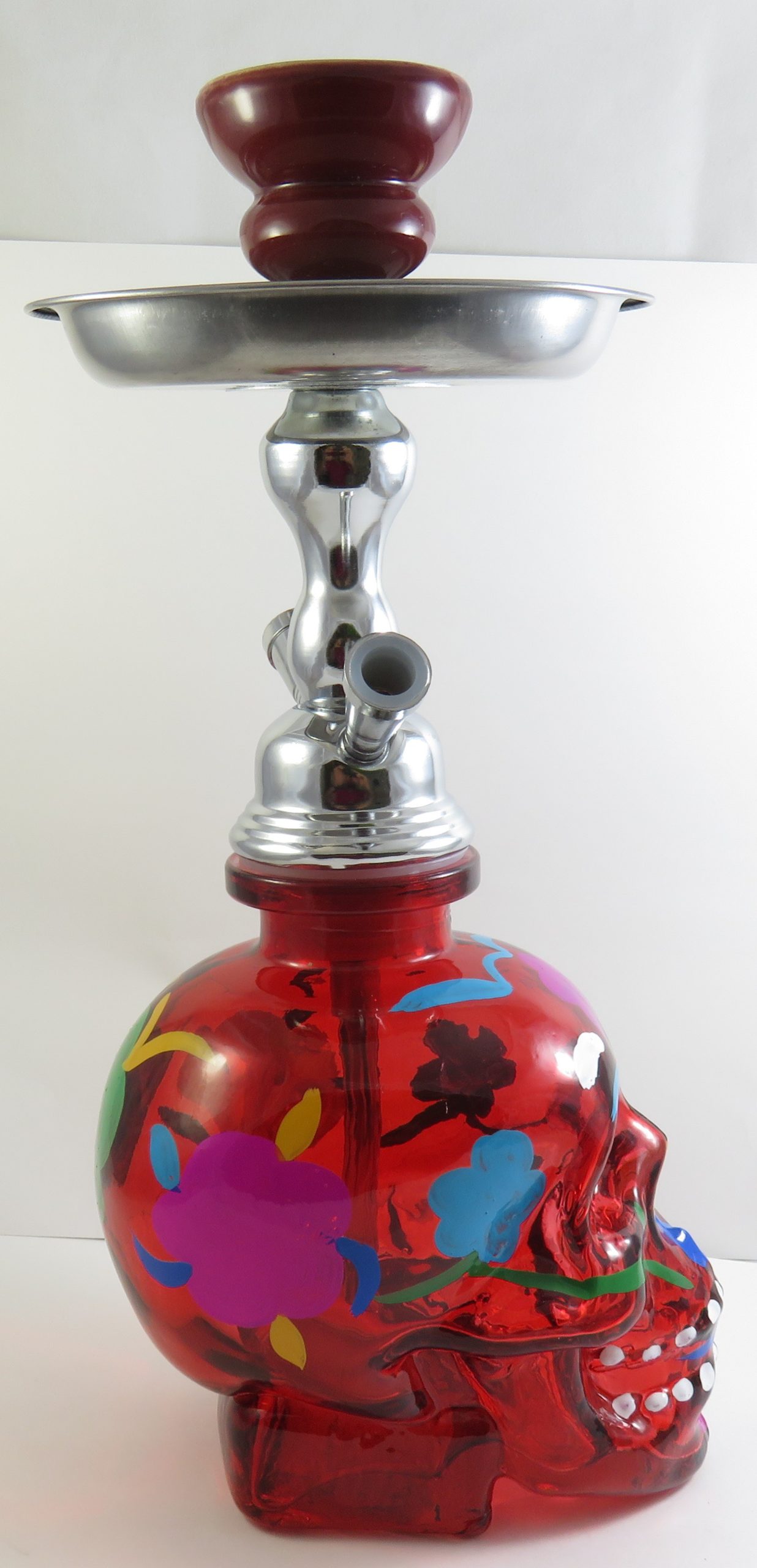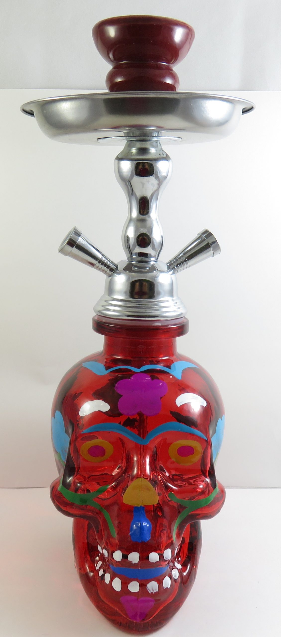 Narguilé réservoir tête de mort, 2 tuyaux.