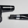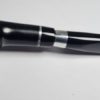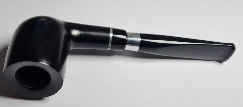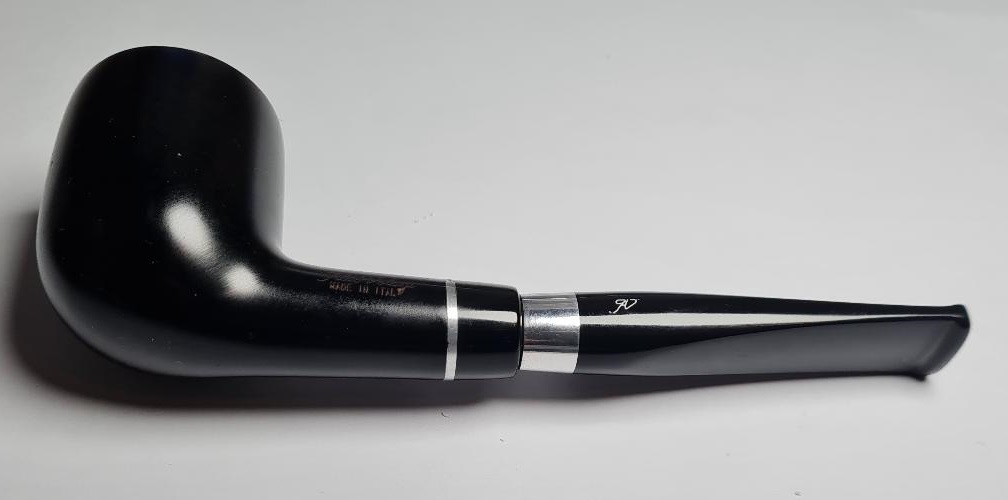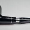 Pipe italienne Aldo Velani noire, tige bague argent, tuyau en acrylique monté d’une en métal argenté, sans filtre.