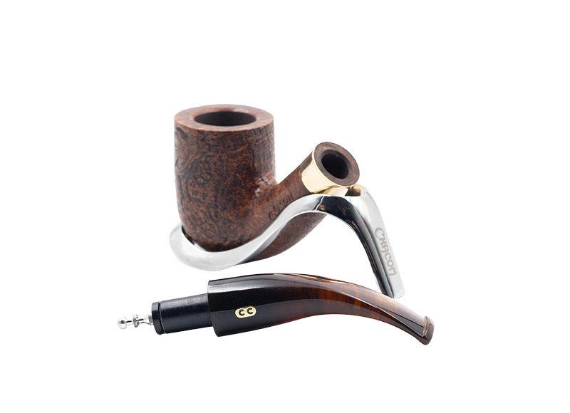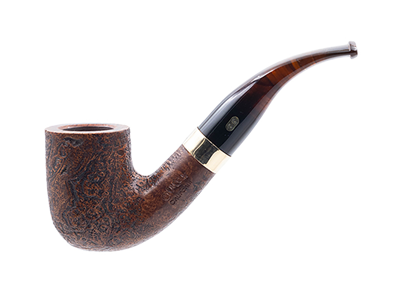 La Chacom Churchill n°808 sablée est une pipe courbe de forme pipe courbe de forme “Hongroise” ou “Chasse” dotée d’une finition sablée brune, d’un tuyau en acrylique imitation ambre et d’une bague Similor.