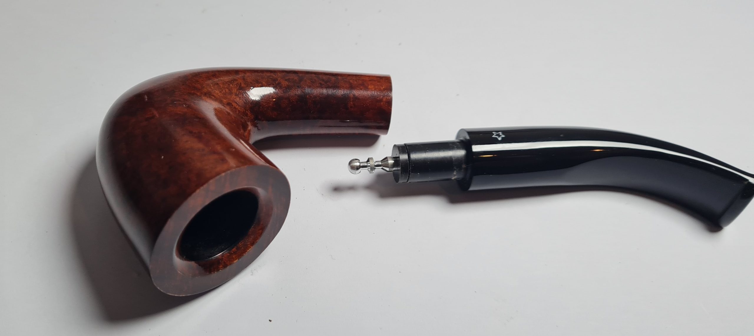 Pipe Dr BERGER marron courbe, foyer évasé, tuyau en acrylique, filtre métal ou 9mm.