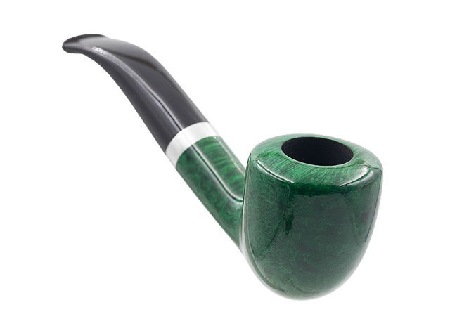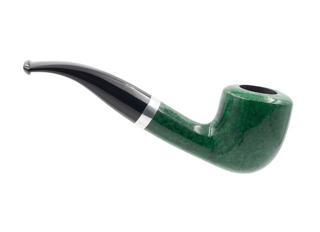Pipe courbe compact de forme “Pear” (appelée également “Acorn”) à la finition verte brillante, à mi-chemin entre la pipe classique et la pipe brûle-gueule.