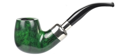 Pipe Opus one spigot verte courbe. Tige avec une bague en argent, tuyau en acrylique agrémenté d’une bague en métal argenté. Sans filtre