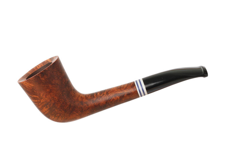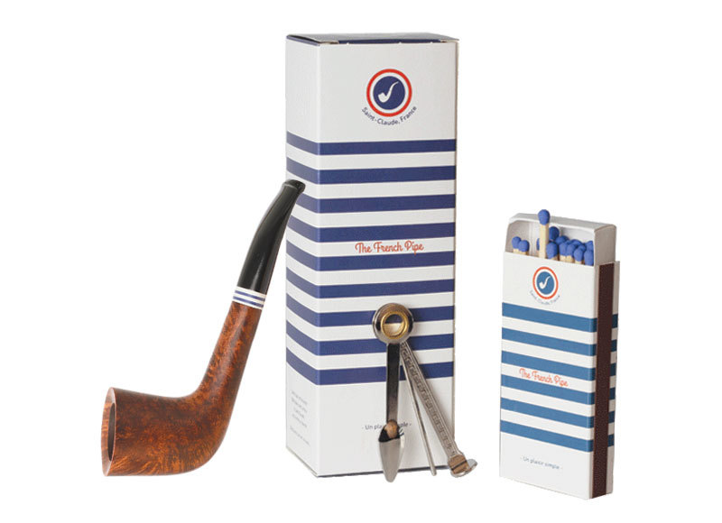 La pipe The French Pipe n°2 est une pipe courte et légère dotée d’un foyer rond et légèrement évasé de forme “Zoulou”. Elle est ornée d’une élégante bague en acrylique bleu et blanc rappelant l’indémodable marinière, emblème du chic à la française. Dite “pratique”, elle se glisse aisément dans une poche. Particulièrement agréable à tenir en bouche, elle laisse les mains libres à son propriétaire pour s’adonner à ses loisirs ou tâches quotidiennes. Cette pipe en bruyère est vendue accompagnée d’un étui en tissu, d’un couteau-fumeur 3 branches, d’une boite d’allumettes longues (9 cm) ainsi que d’un petit guide de conseils pour faciliter son utilisation et son entretien.