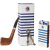 La pipe The French Pipe n°1 est une pipe demi courbe et légère dont le foyer rond assure une agréable prise en main. Elle est ornée d’une élégante bague en acrylique bleu et blanc rappelant l’indémodable marinière, emblème du chic à la française. Cette charmante pipe en bruyère est vendue accompagnée d’un étui en tissu, d’un couteau-fumeur 3 branches, d’une boite d’allumettes longues (9 cm) et d’un petit guide de conseils pour faciliter son utilisation et son entretien.