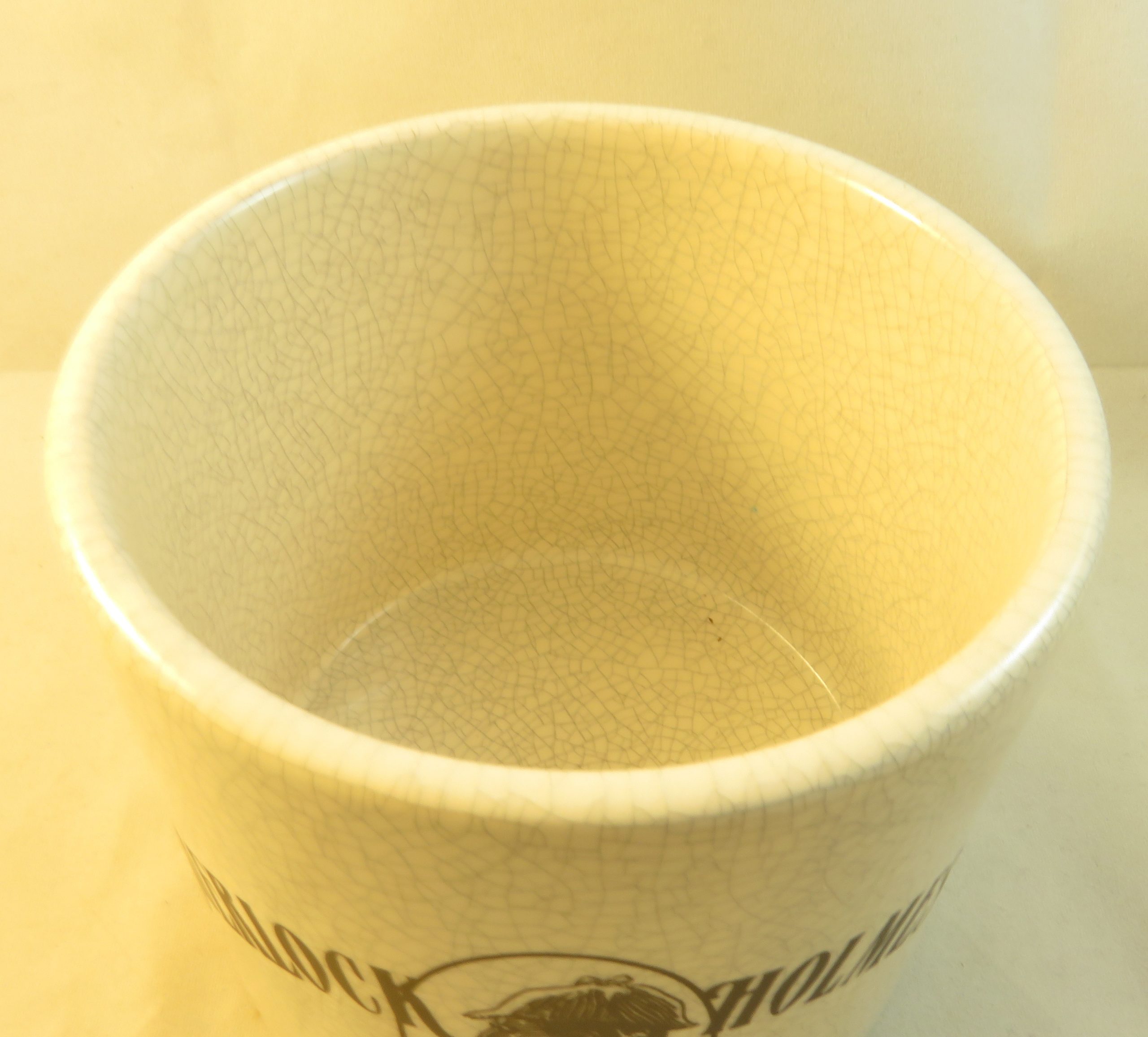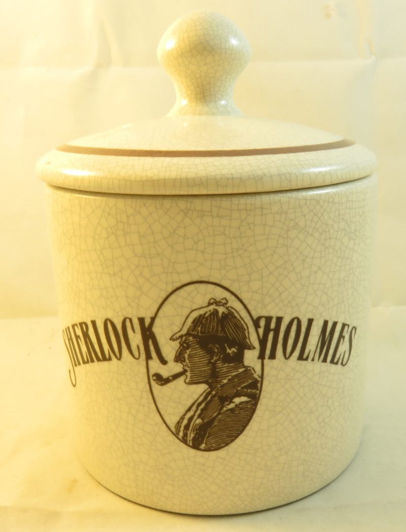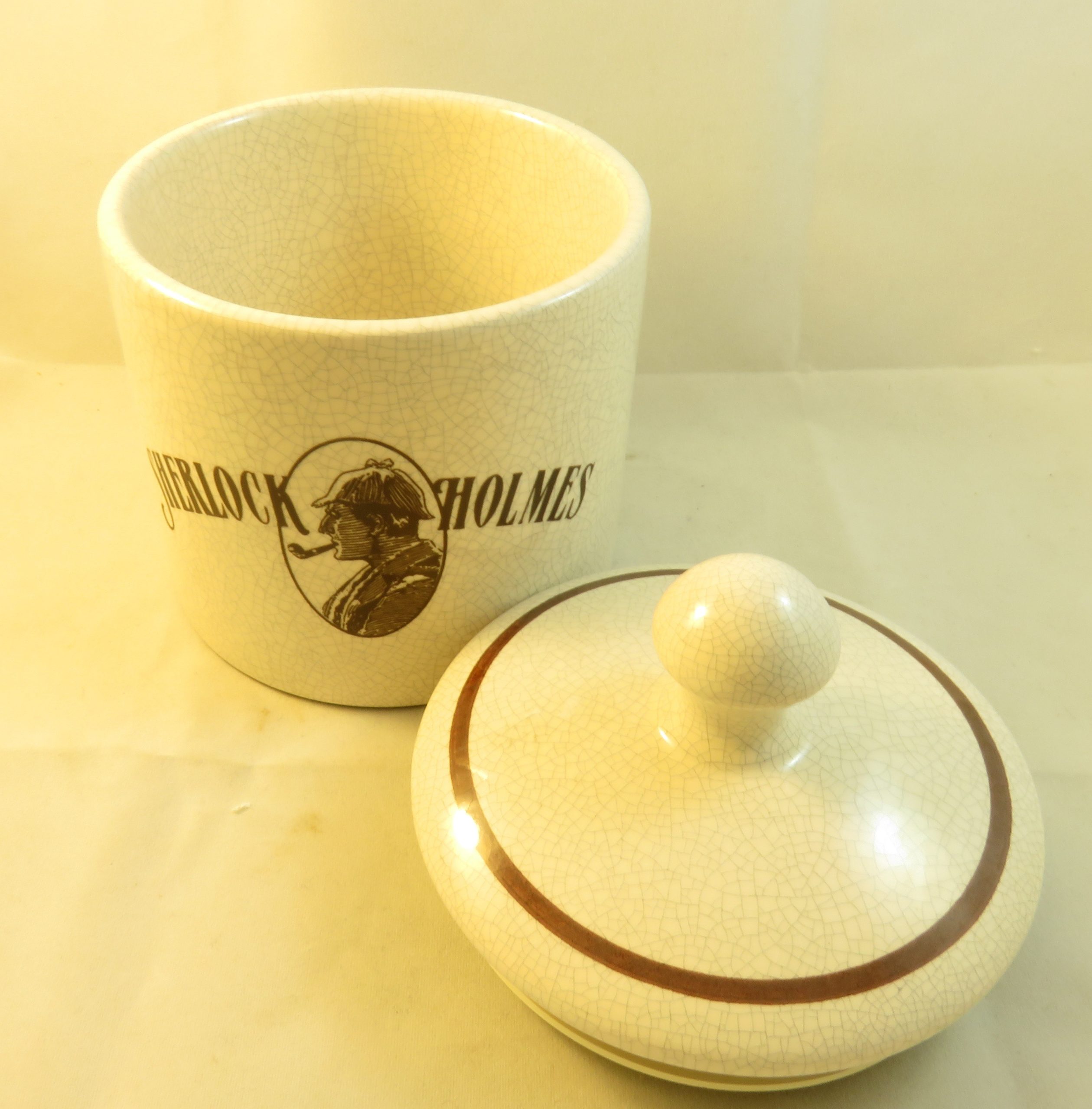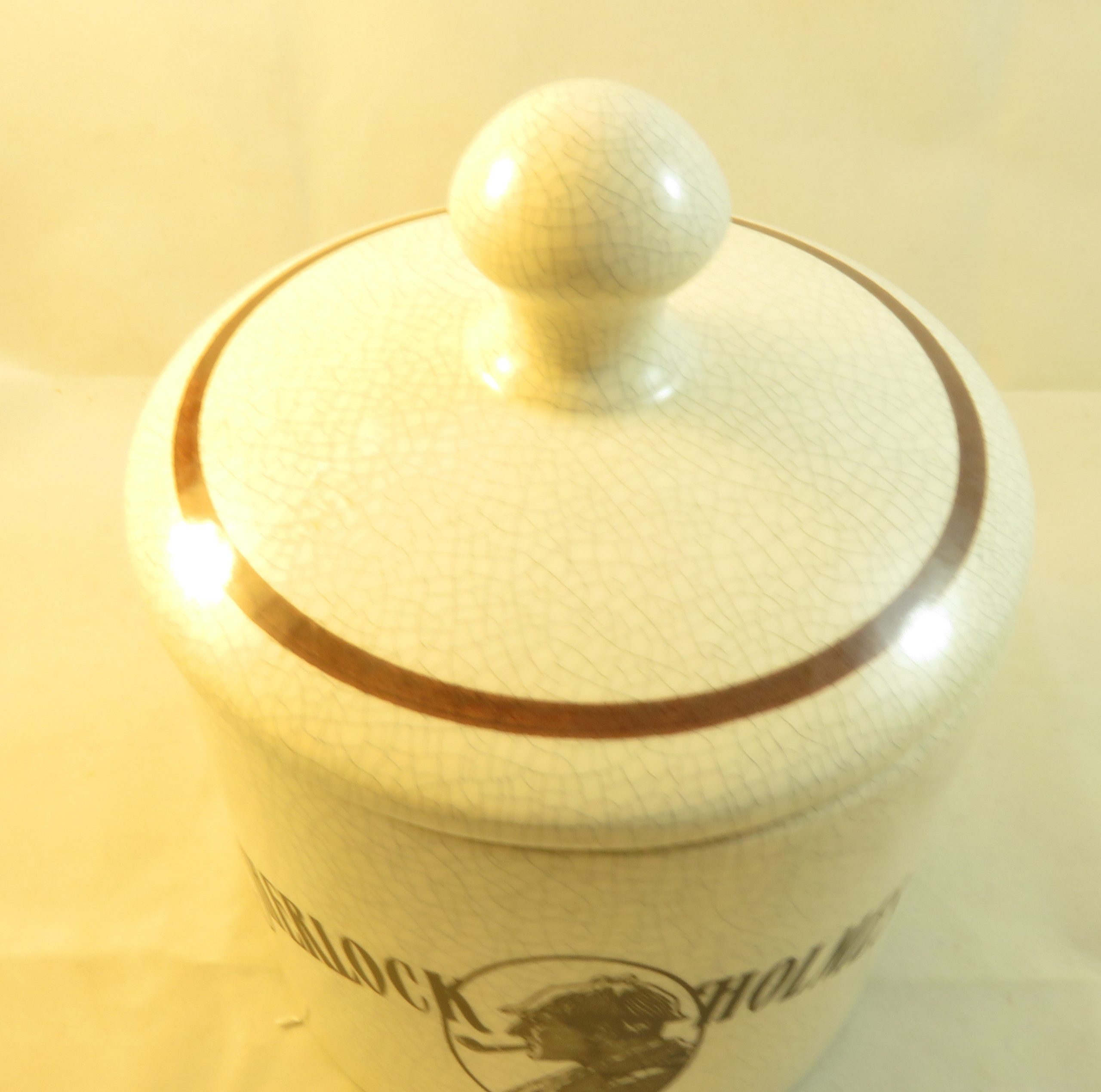 Pot à tabac en céramique décor Sherlock Holmes blanc craquelé.