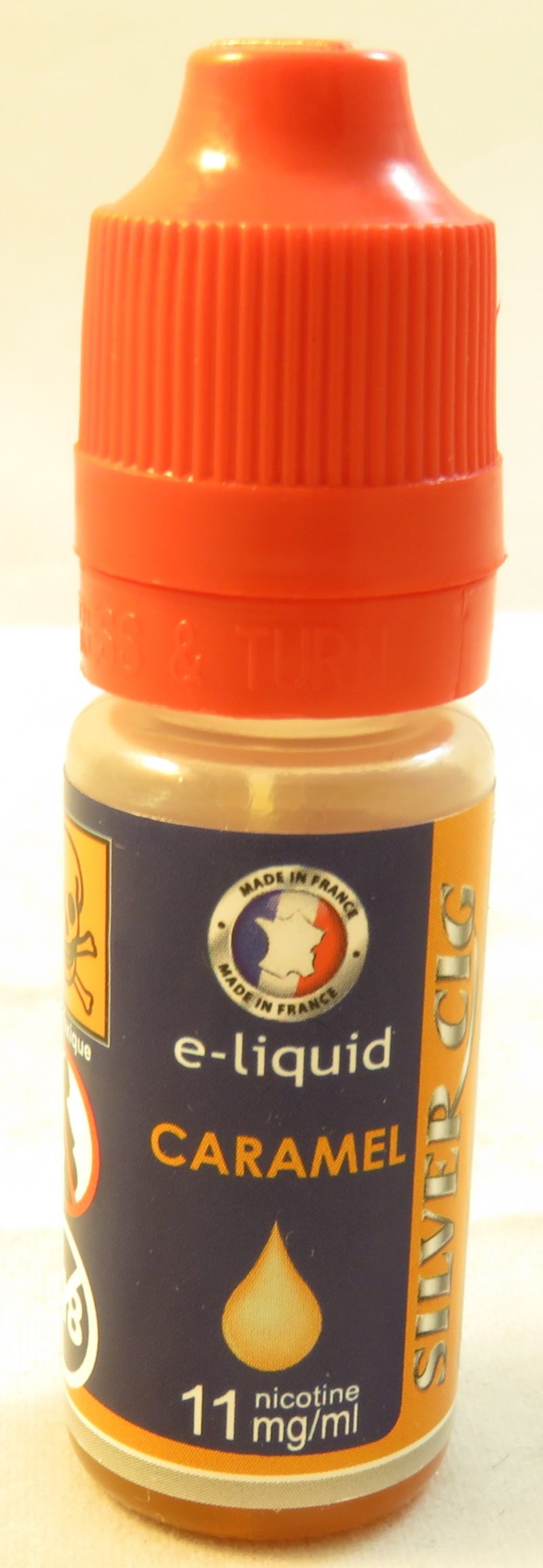 E-liquide Silver cig goût caramel 11mg de nicotine.