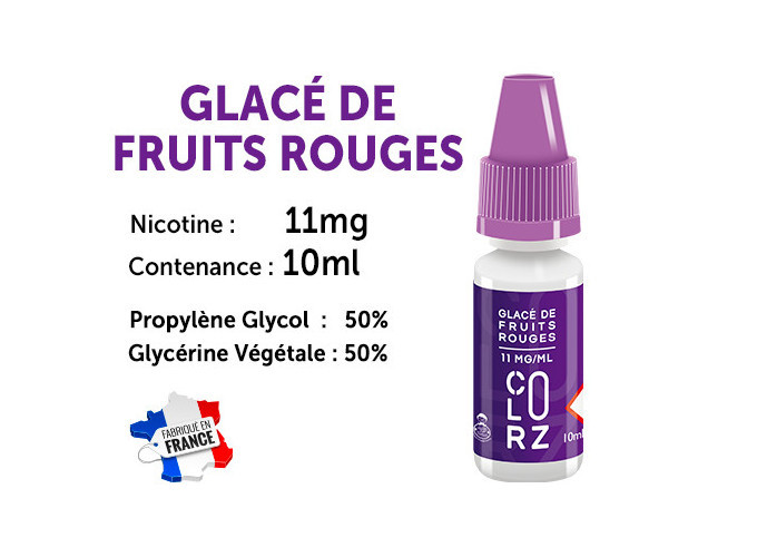 E-liquide Vap colorz Glacé de fruits rouges 11mg/ml de nicotine.