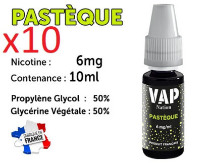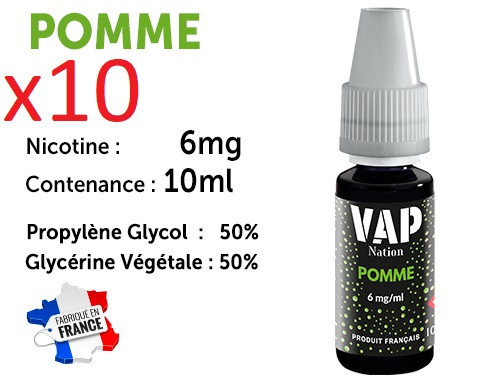10 flacons e-liquides Vap Nation pomme 6mg/ml de nicotine.