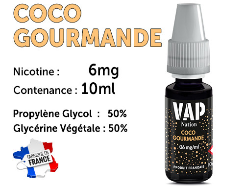 Vap Nation coco gourmand 6mg/ml de nicotine. Une nois de coco gourmande, légèrement caramélisée