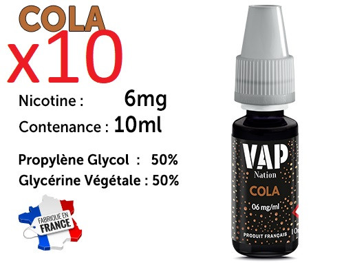 10 flacons e-liquides Vap Nation cola 6mg/ml de nicotine.